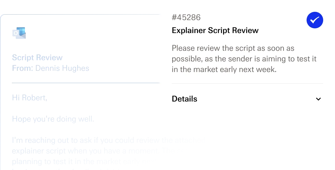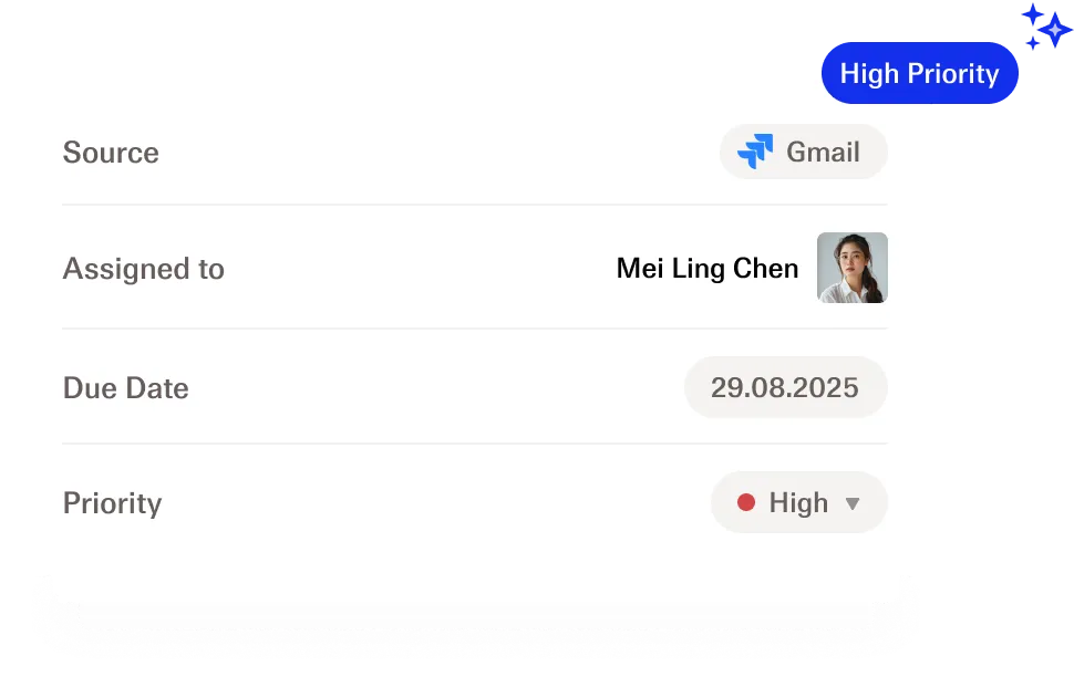 Burai extracts key data around tasks and displays them in a quick summary to save you time.